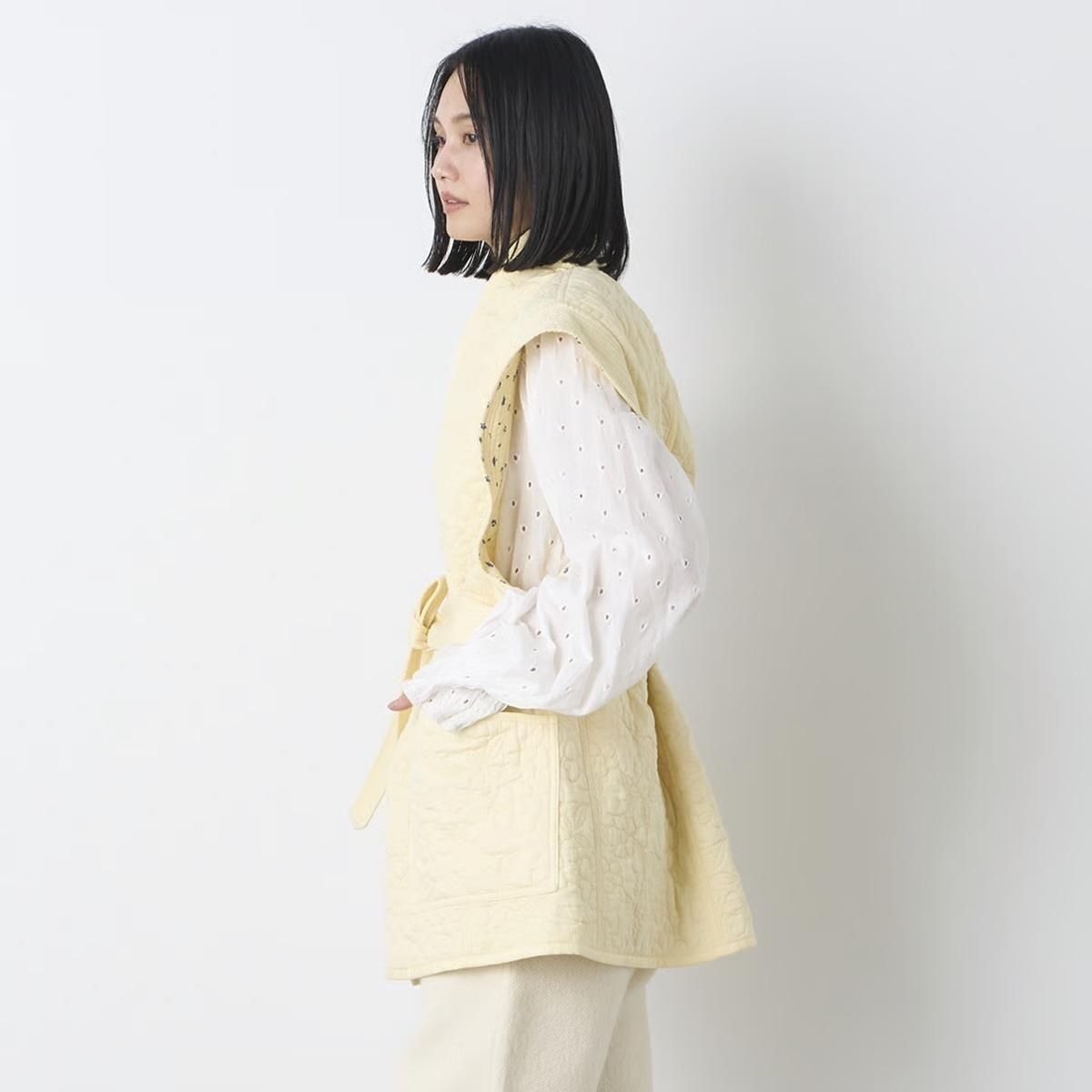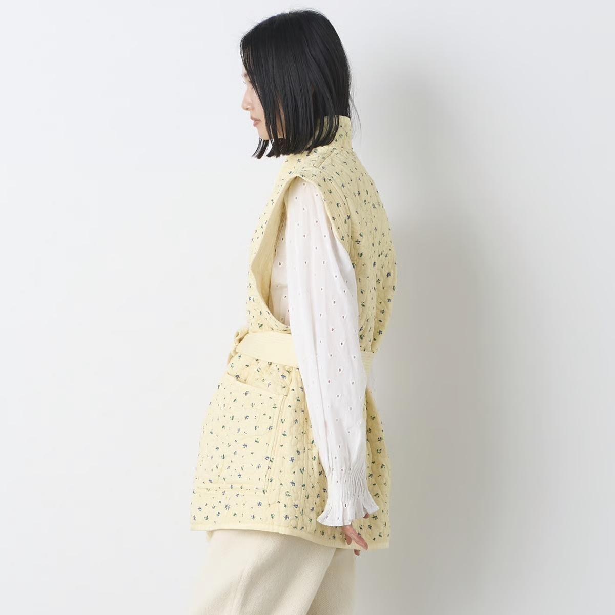 VENIT ヴェニット REVERSIBLE QUILTING EMBROIDERY VEST (Yellow小花柄)