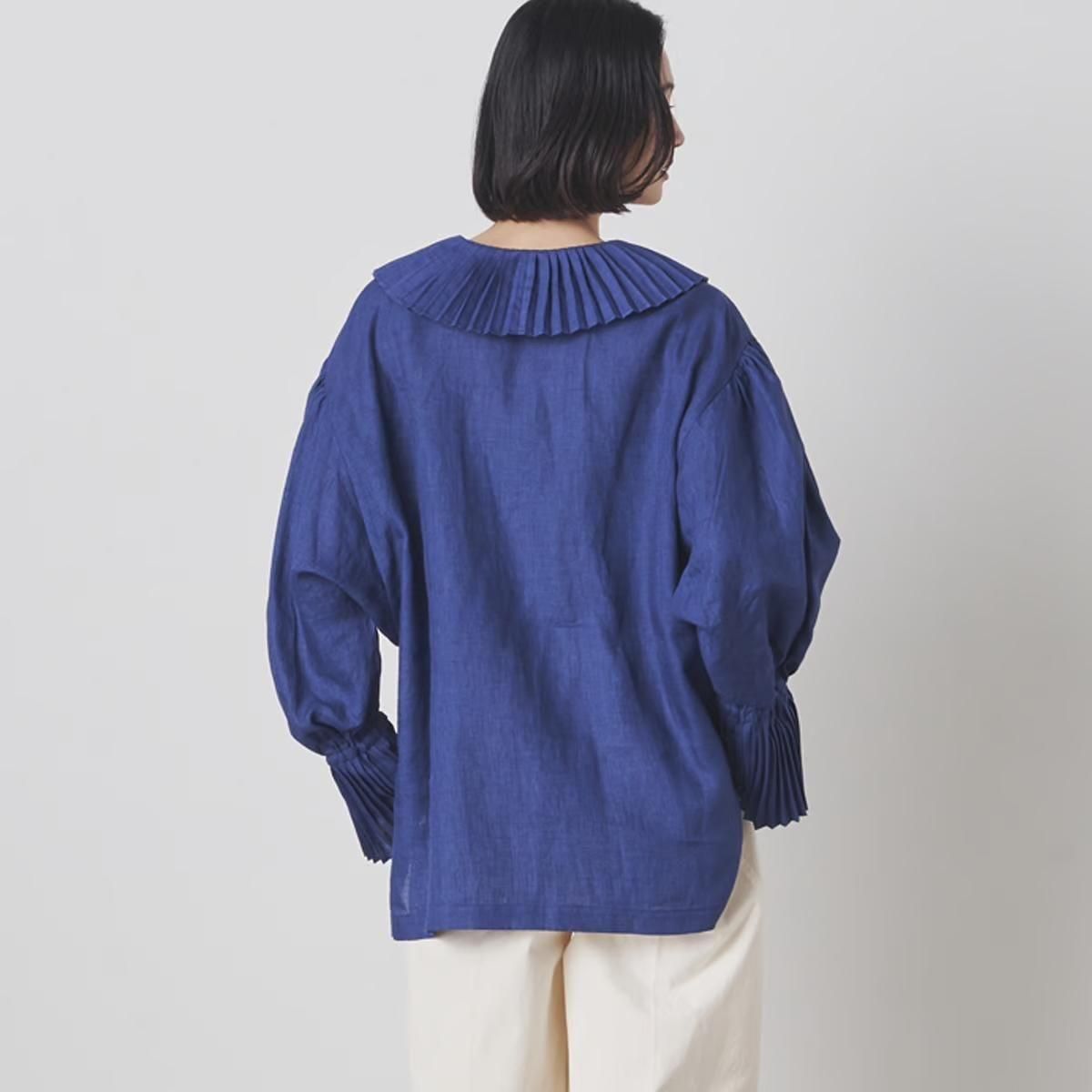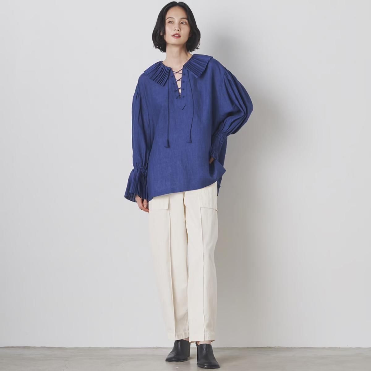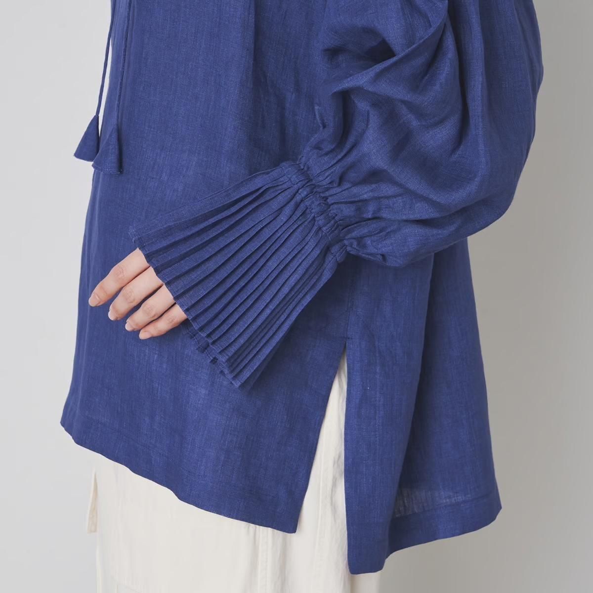 商品名:LINEN PLEATED BLOUSE Navy (Indigo)