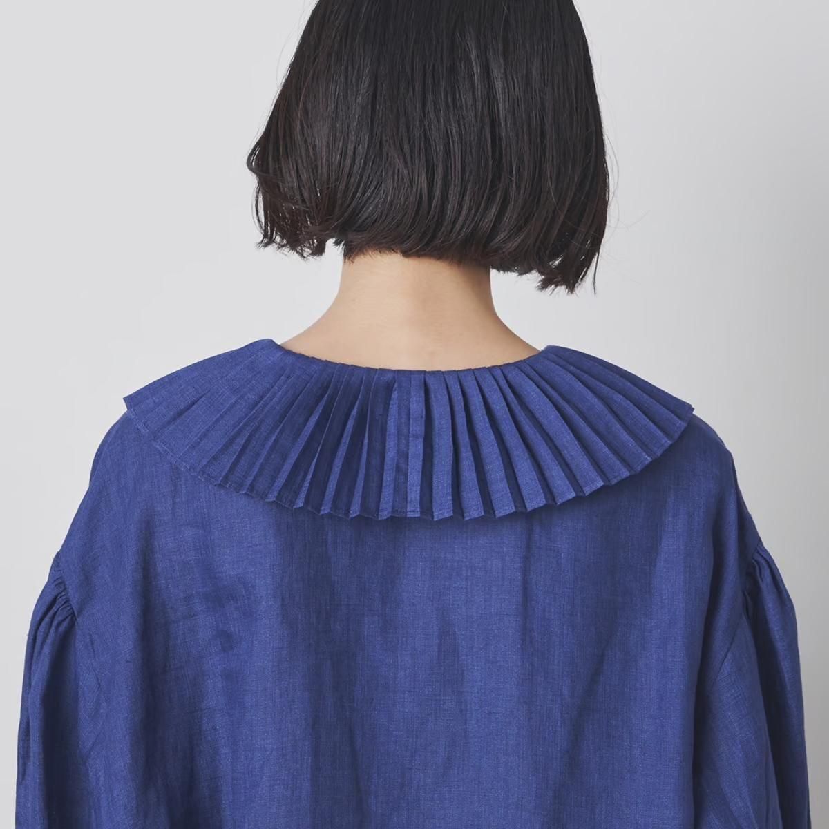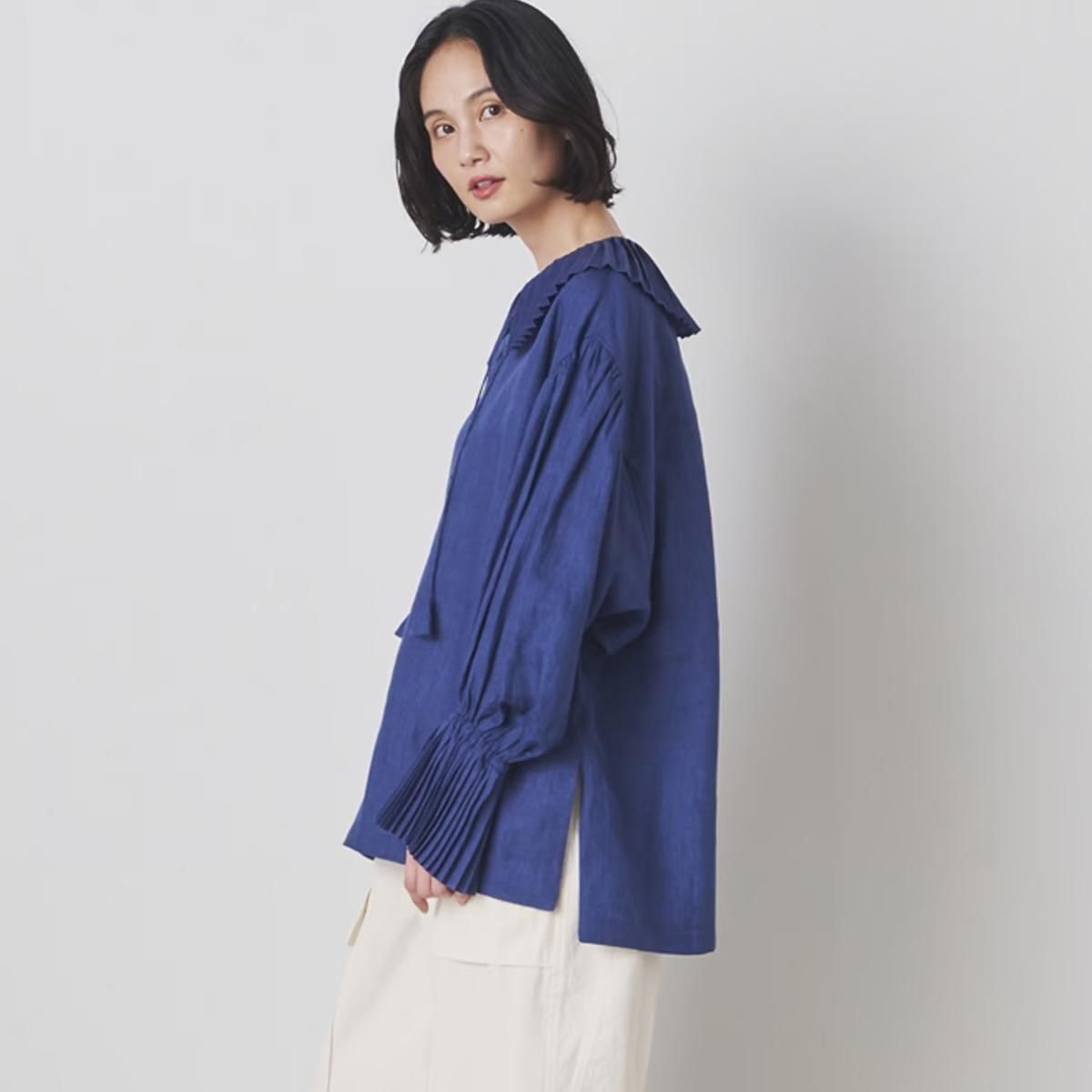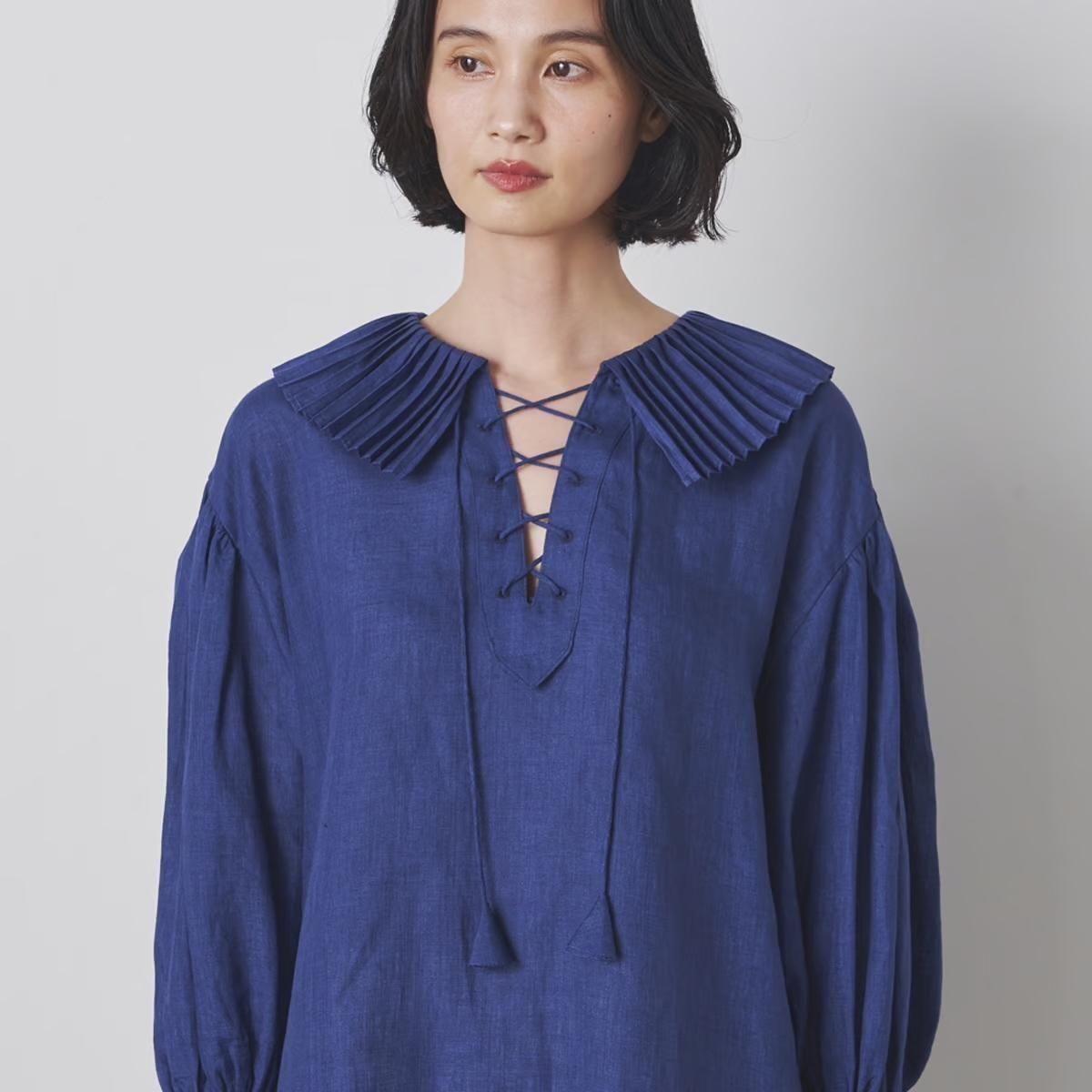 商品名:LINEN PLEATED BLOUSE Navy (Indigo)