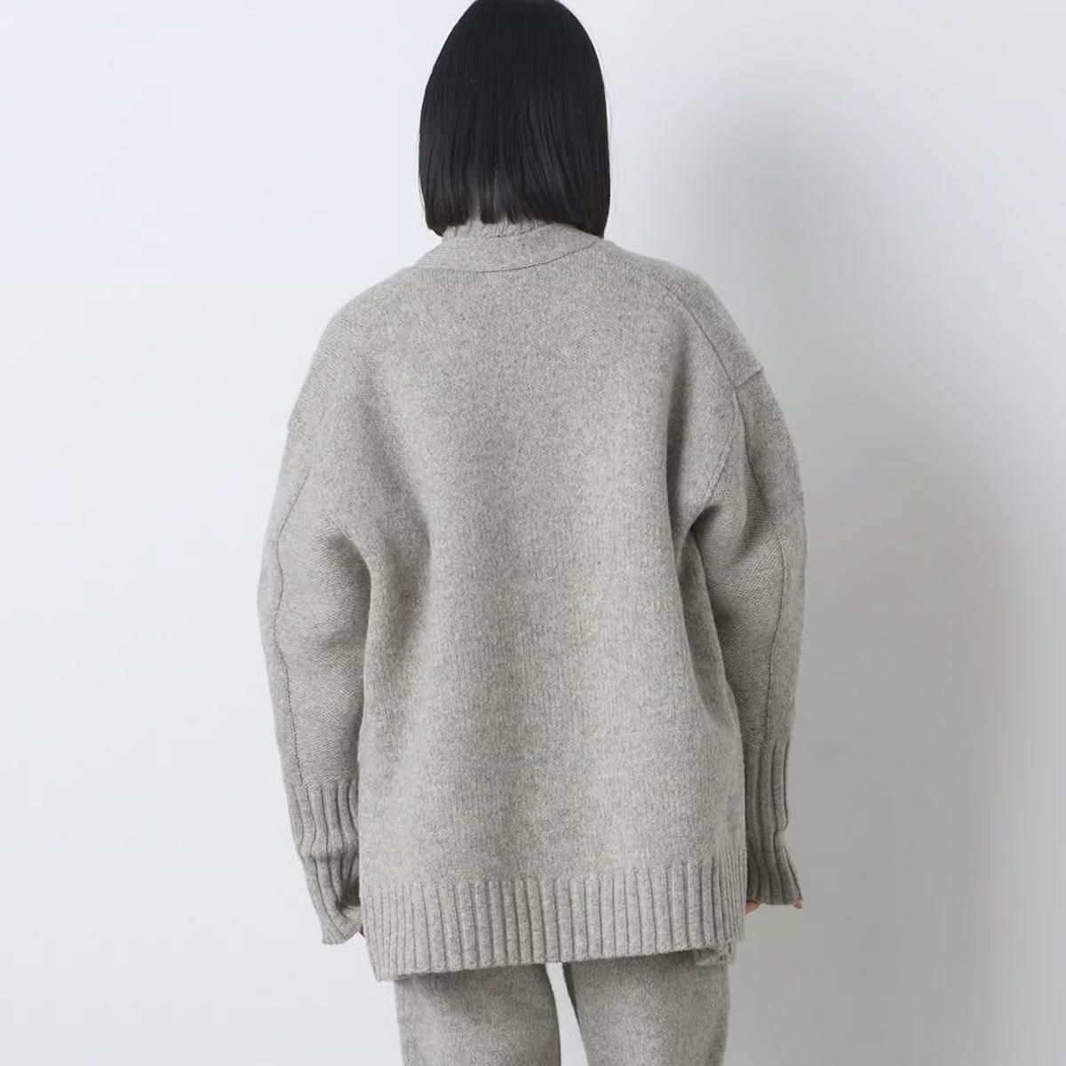 商品説明:自然なままに飼育された羊から刈り取った羊毛(NON MULESING WOOL)は糸に膨らみがあり見た目に反して軽さのある糸を使用したVネックカーディガンvenit定番のBIGカーディガンをアップデートしています。