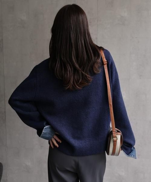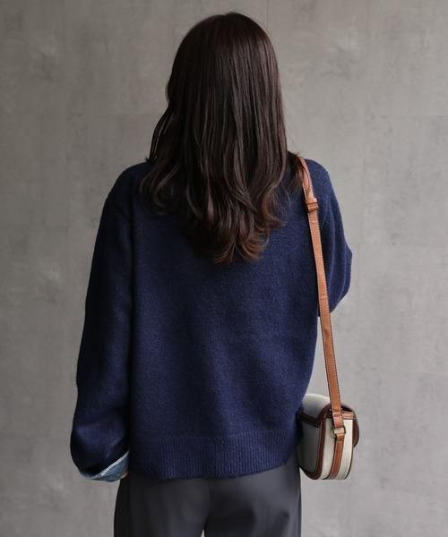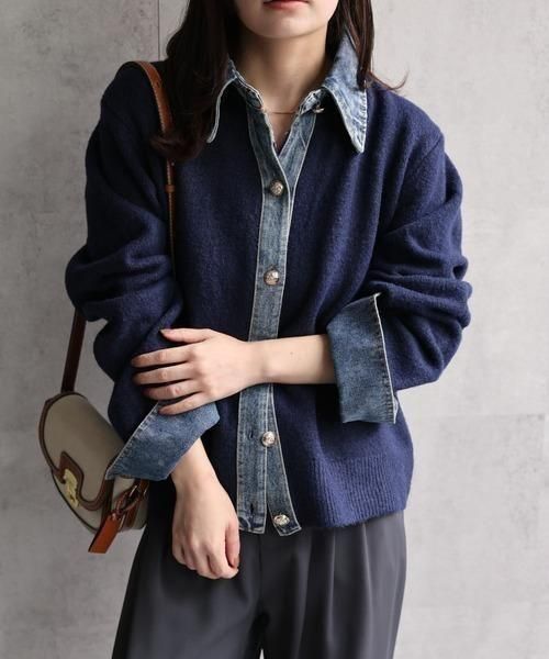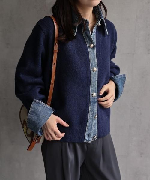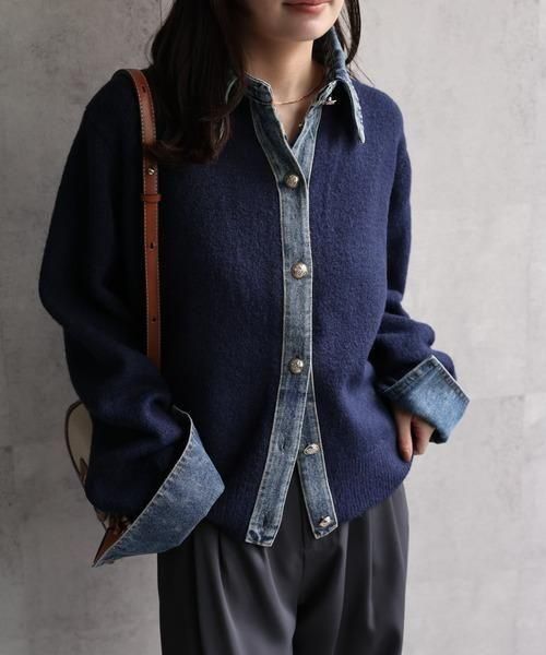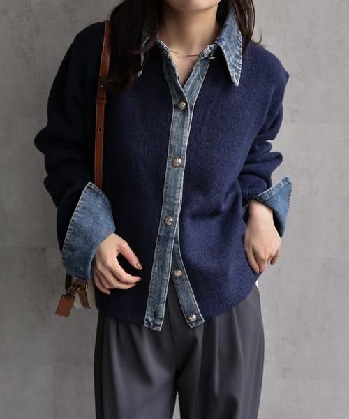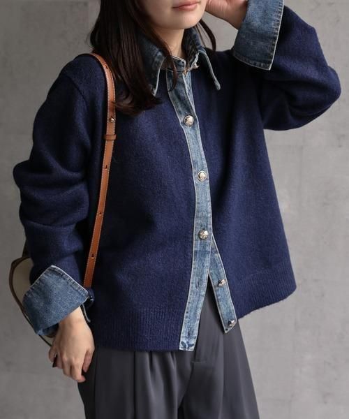 商品名:デニム×ニット ドッキングカーディガン〈ネイビー〉