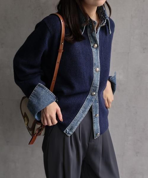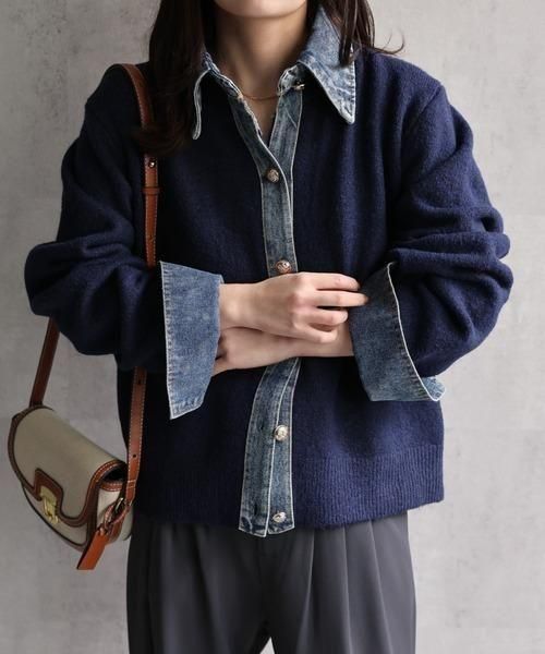 デニム×ニット ドッキングカーディガン〈ネイビー〉